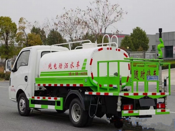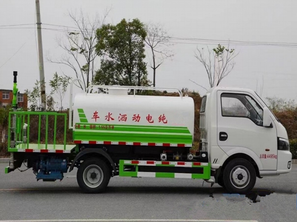 3)灑水車采用東風(fēng)純電動二類汽車底盤改裝,具有對沖、后灑、側(cè)噴、高炮等功能。