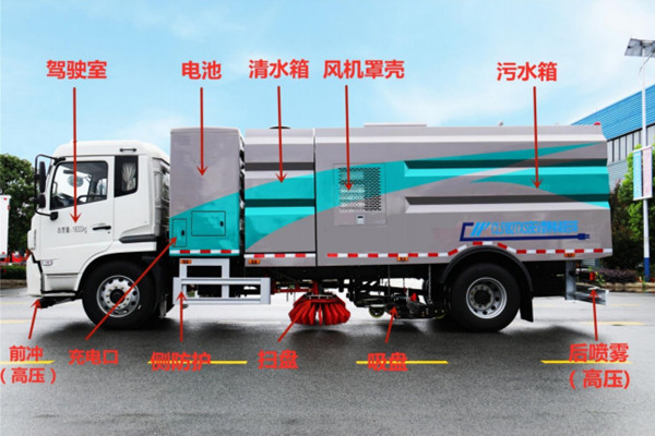 其它 | 該車僅選用5300軸距,裝有吸盤、掃盤、水箱等裝置,用于道路洗掃作業;2.側防護由專用裝置和防護欄組成,防護欄材料:鋁合金,螺栓連接;后下部防護材質:Q235,螺栓連接,截面尺寸240mm×60mm,離地高度490mm;3.儲能裝置種類/單體生產企業/儲能裝置生產企業:磷酸鐵鋰蓄電池/湖北億緯動力有限公司/湖北億緯動力有限公司,磷酸鐵鋰蓄電池/寧德時代新能源科技股份有限公司/寧德時代新能源科技股份有限公司;電機的額定/峰值功率分別為:120kW/180kW;4.ABS型號:CM4XL-4S/4M,生產廠家:廣州瑞立科密汽車電子股份有限公司;5.該車型安裝有具有衛星定位功能的行駛記錄儀,可選裝ETC車載裝置,選裝外觀箱體. | ||