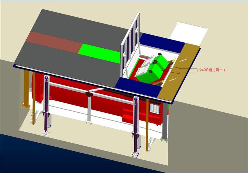 只要將地埋式垃圾箱上蓋打開,垃圾箱的推頭就會把推頭室的垃圾推到垃圾貯料倉從而達到垃圾壓縮功能。